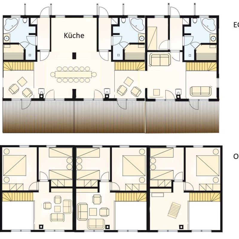 Auf 264 m² haben Sie ausreichend Platz für 12 Personen + 4 Kinder. Das Haus verfügt über 7 Schlafzimmer, 3 Bäder mit jeweils Sauna, Whirlwanne und Dusche. Der große Essbereich lädt zu gemeinsamen unvergesslichen Abenden mit der ganzen Familie ein.